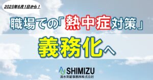 いつも大変お世話になっております。清水英雄事務所です。 今回は、2025年6月1日に施行予定の改正労働安全衛生規則による、「熱中症対策義務化」についての解説動画公開のお知らせです。 これからの時期、現場での工事や資材の搬 … 続きを読む 【解説動画公開のお知らせ】2025年6月1日より、熱中症対策が義務化されます。